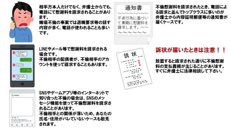 - 誰からの請求か(配偶者本人/代理人弁護士/不倫相手本人など)