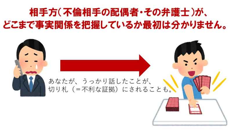 - 不倫の具体的内容をしゃべりすぎない(相手の証拠状況が分からない段階ほど危ない)